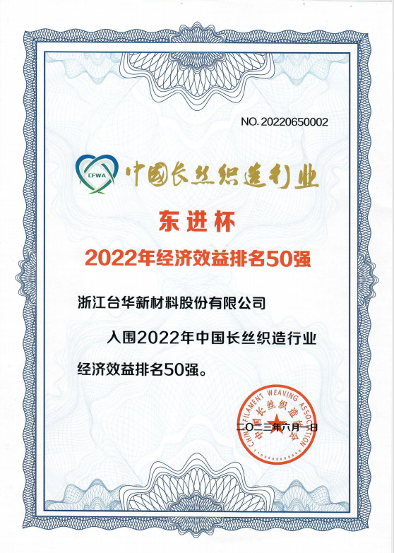 東進(jìn)杯2022年經(jīng)濟(jì)效益排名50強(qiáng)(第二)