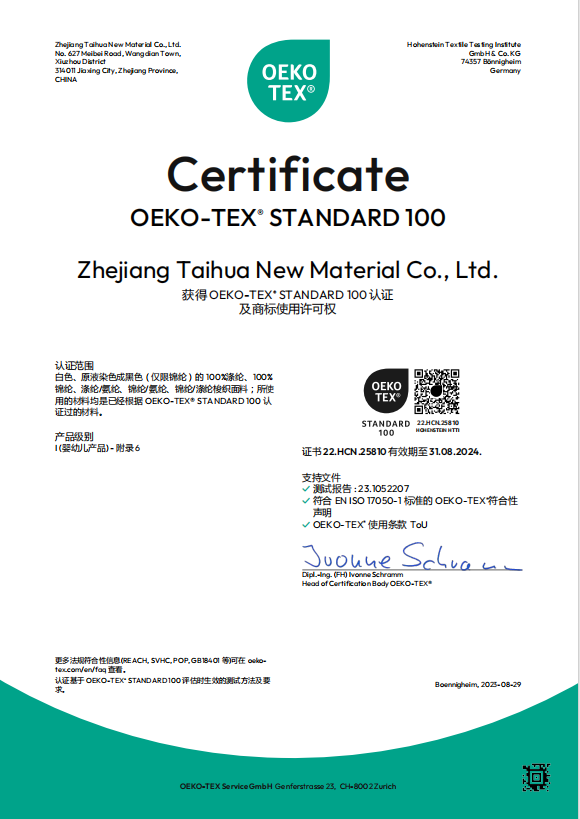 臺(tái)華新材 2023年原生產(chǎn)品Oeko-Tex Standard 100證書(shū)